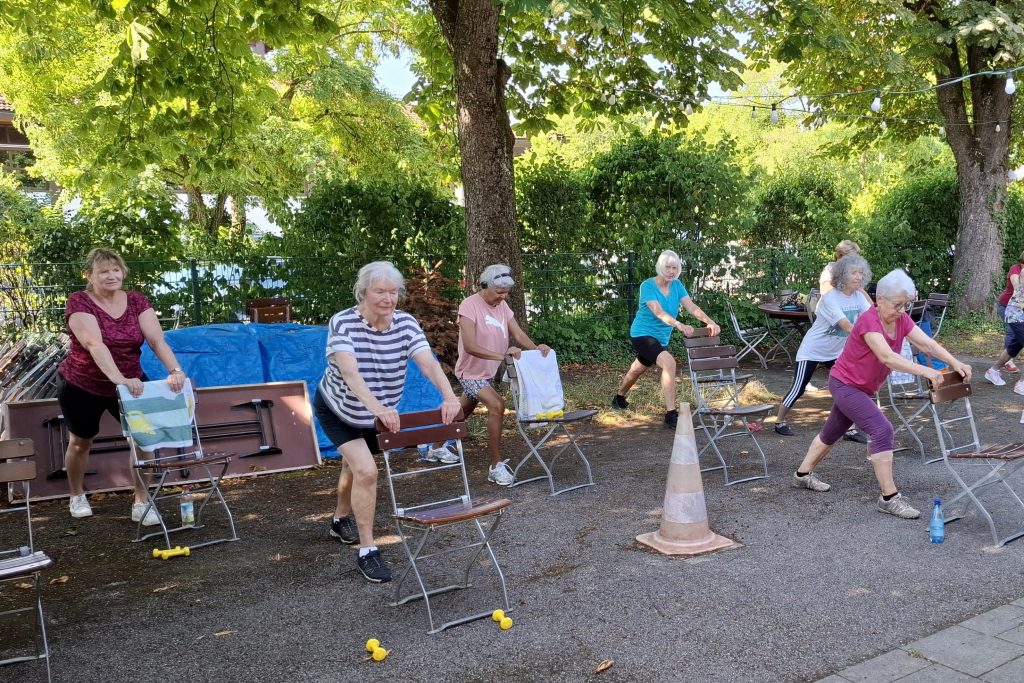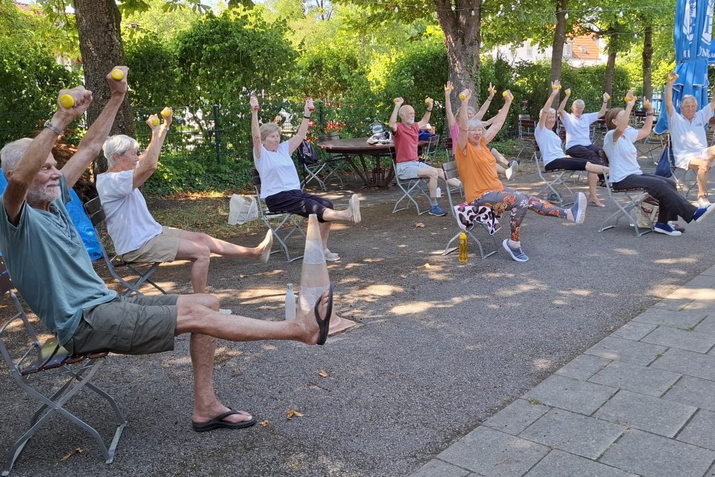 Frau Schwarz bietet am Dienstag und am Donnerstag je eine Stunde Stuhlgymnastik an! Hier können die Teilnehmer im Sitzen trainieren. Aber auch im Sitzen kann gut und effektiv geübt werden; Muskelkräftigung, Koordination und Beweglichkeit stehen hier im Vordergrund.