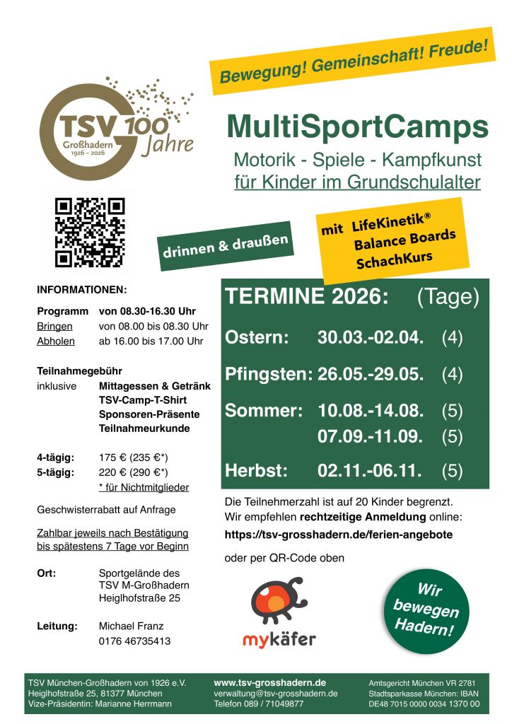 Sommerferien: Montag, 10.08. – Freitag, 14.08.2026 (5 Tage)