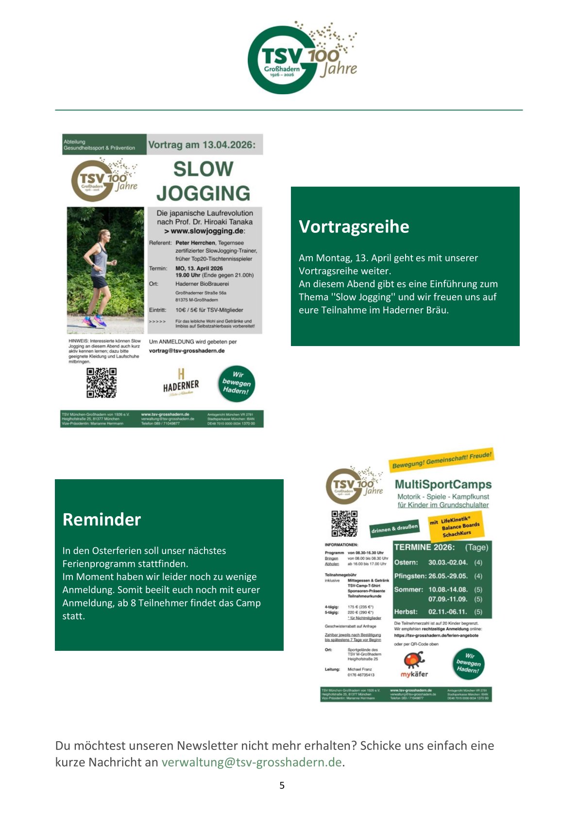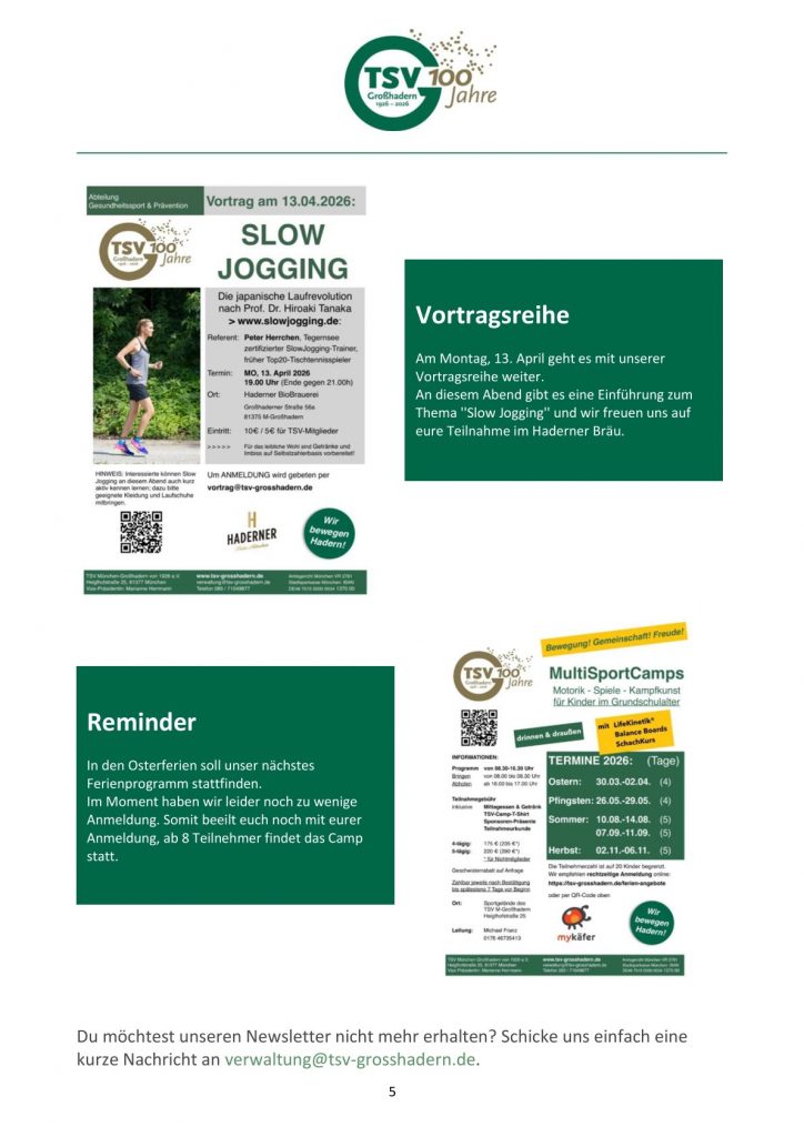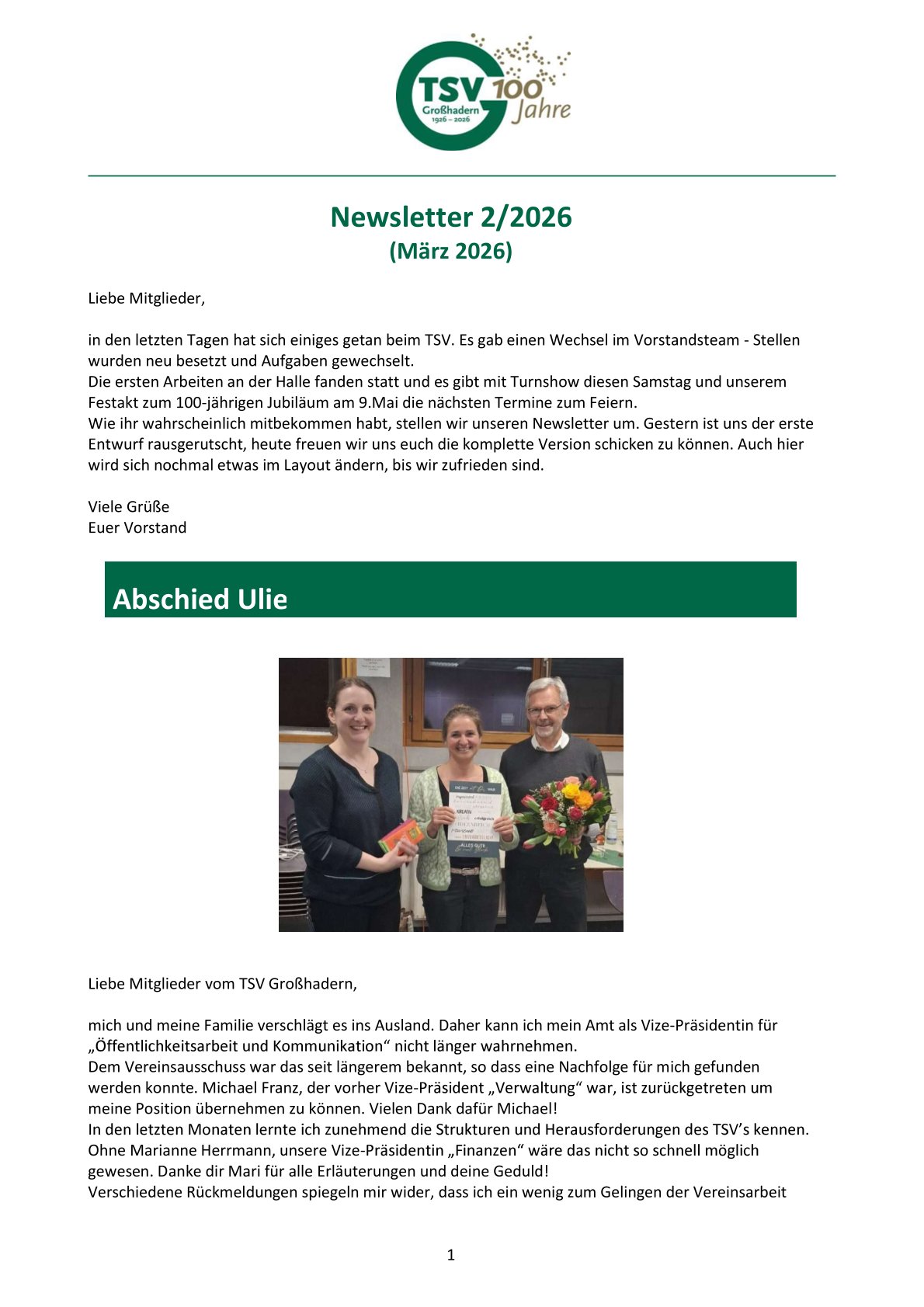 mit unserem Newsletter 2/2026 möchten wir über wichtige Neuigkeiten