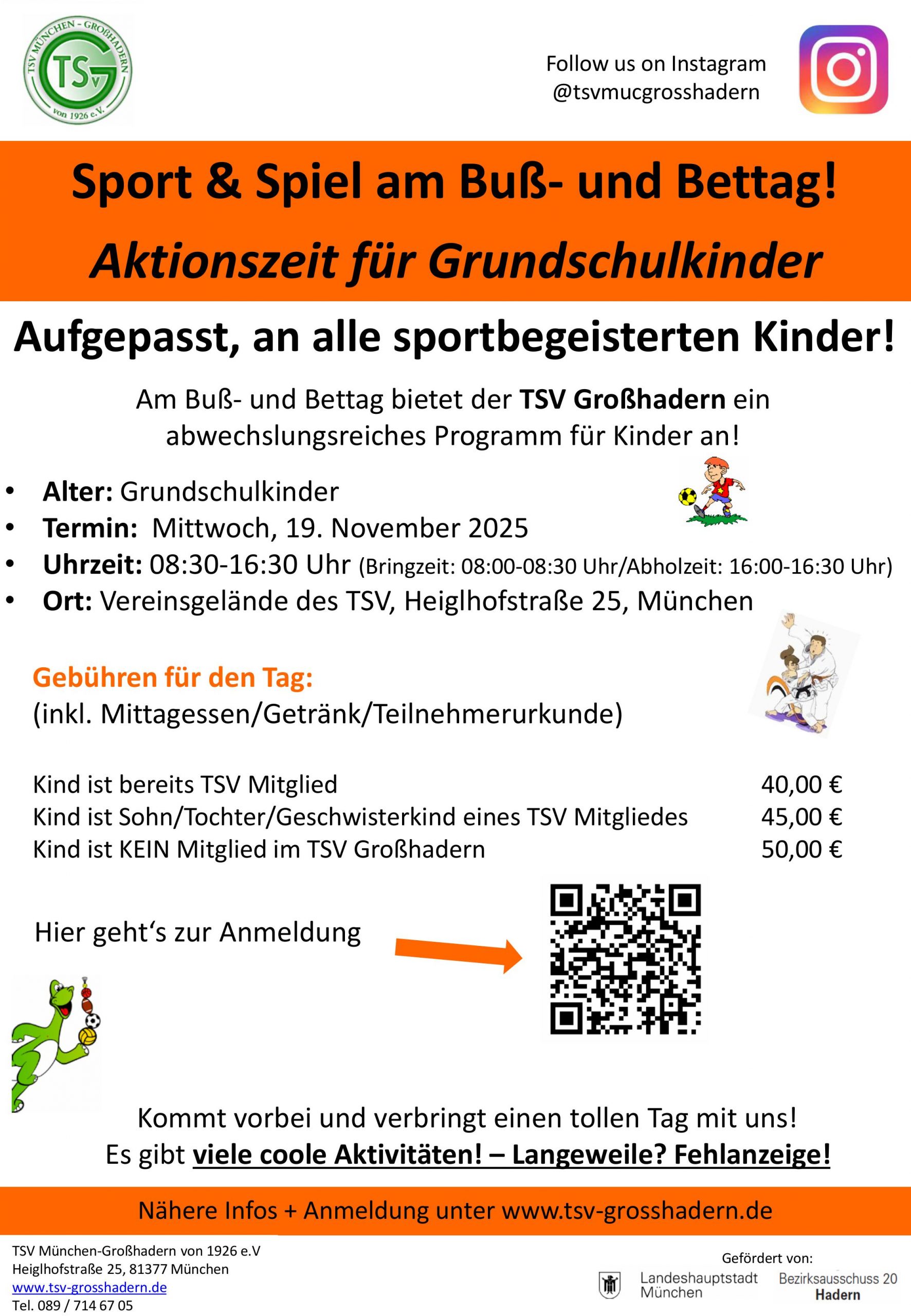 Wir bieten an Buß- und Bettag (19. November 2025) ein Betreuungsprogramm für Grundschulkinder an.