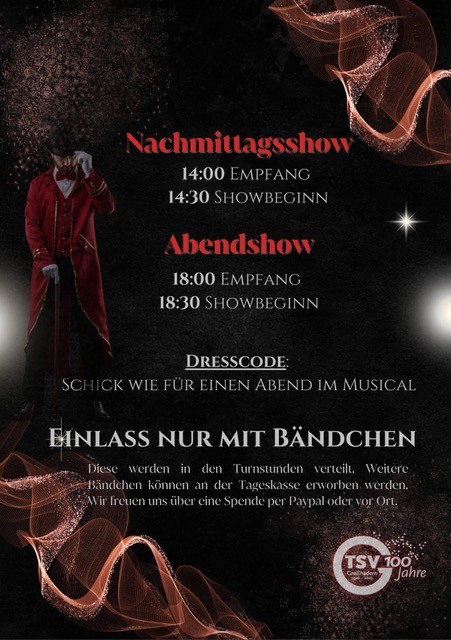 Am Samstag, 21. März 2026 veranstaltet die Turnabteilung eine Turn-Gala unter dem Motto „Showtime – 100 Jahre“, ein Verein wie im Film! Zwei Vorstellungen wird es in der Judohalle geben.